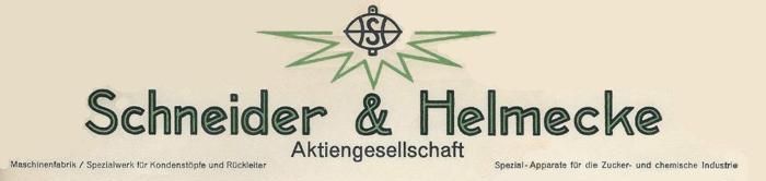 Ein Illustrierter Firmenkatalog gibt Auskunft über die Anfänge der Firma: SCHNEIDER & HELMECKE. Technisches Geschäft Magdeburg. Lager von Bedarfs-Artikeln für Zuckerfabriken, Brauereien, Brennereien, Chemische Fabriken, Gruben, Darren, Spinnereien, Papier- und Tuch-Fabriken Katalog mit zahlreichen Abbildungen, 88 Seiten, gedruckt bei A. Wohlfeld, Magdeburg, 1886 [Quelle: www.zvab.com / Magdeburger Antiquariat |